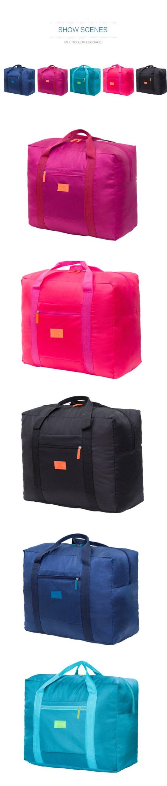 Convenient Front PocketDouble ZipperFoldable and LightweightWaterproof and DurableMulti- PurposeAvailable in Black; light Green; Navy; Rose RedPerfect for carryon itemsReinforced Straps